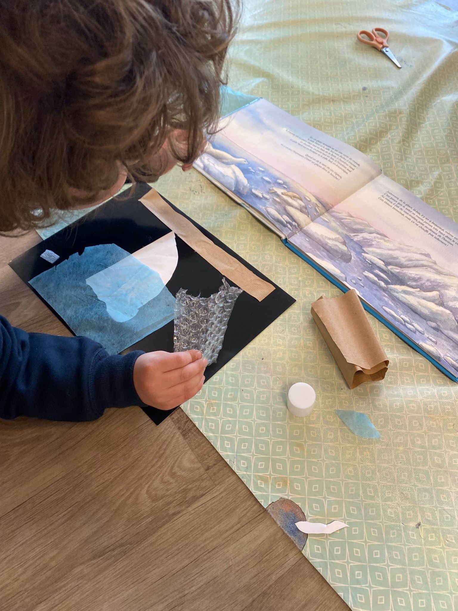 To better understand the water cycle, the children took part in scientific experiments focusing on evaporation and the transformation of water. Among other things, they learned how snowflakes are formed and why we only see a small part of an iceberg. This theme also inspired many artistic and sensory explorations. The children created paper snowflakes, experimented with water painting on various surfaces such as filter paper, had fun making prints with bubble wrap, coloured soap bubbles, and even painted using ice cubes!