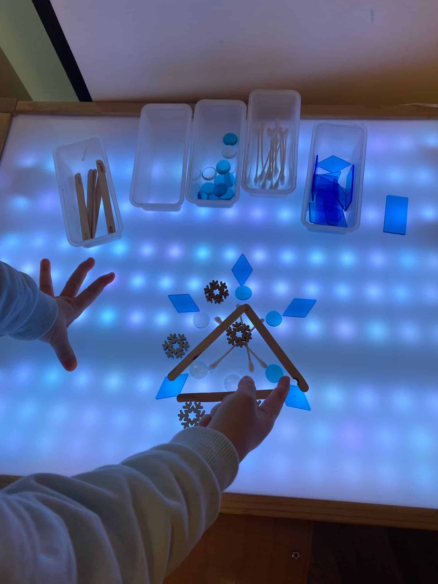 The children also worked on the light table, playing with transparency and light. Water became a source of sound exploration as well, leading to musical creations. Finally, using aluminium allowed the children to create three-dimensional shapes inspired by stalactites and stalagmites, enriching their work in volume and allowing them to explore the theme from many different angles.