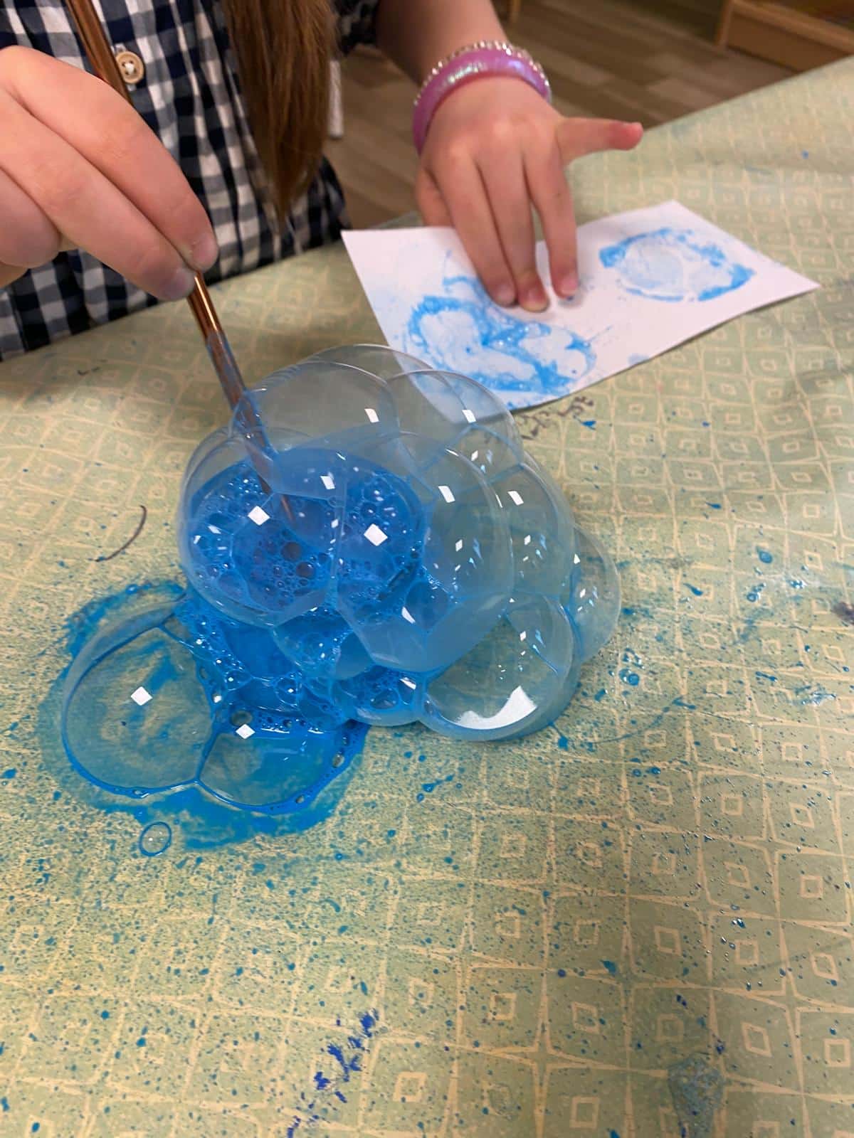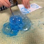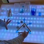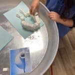 Les enfants ont travaillé sur la table lumineuse afin de jouer avec la transparence et la lumière. L’eau a aussi été source d’exploration sonore, donnant lieu à des productions musicales. Enfin, l’utilisation de l’aluminium a permis la création de formes en volume, inspirées des stalactites et stalagmites, enrichissant le travail en trois dimensions et permettant d’aborder la thématique sous de multiples angles.