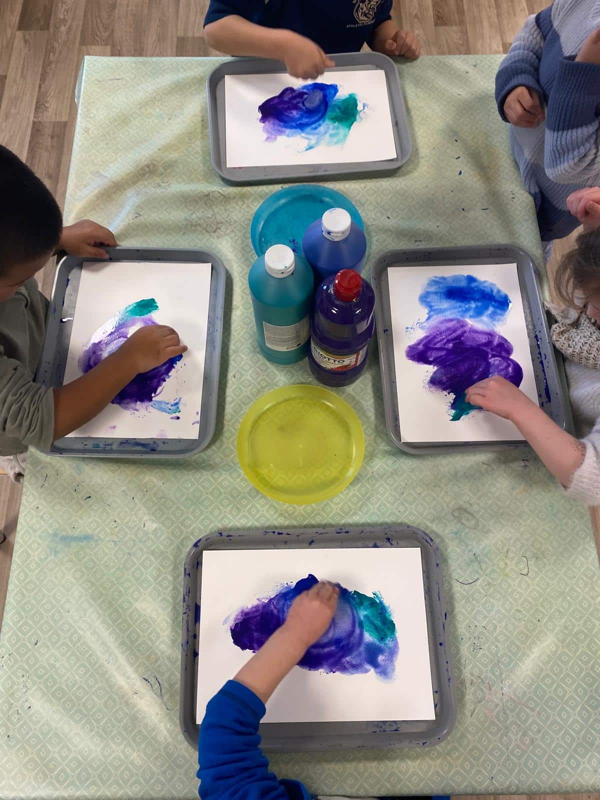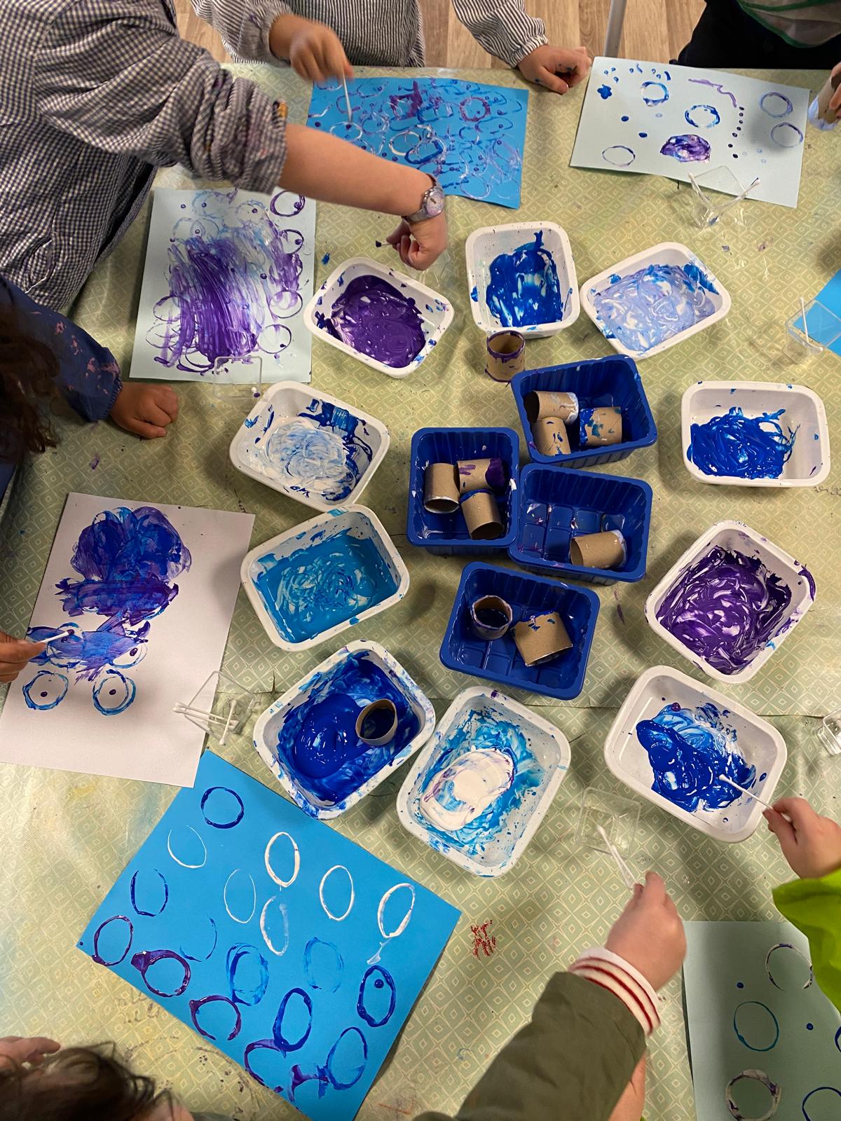 Tout au long du mois, nos petits aventuriers ont exploré le thème de l’eau et de ses états à travers une approche transversale. Nous avons eu la chance de voir la neige tomber à Lyon début janvier, quoi de mieux pour lancer notre thème! Pour bien comprendre le cycle de l’eau, un travail scientifique a été mené grâce à des expériences autour de l’évaporation et des transformations de l’eau. Nous avons entre autres appris comment les flocons se créent et pourquoi nous ne voyons qu’une petite partie des icebergs. Cette thématique a également donné lieu à de nombreuses explorations artistiques et sensorielles. Les enfants ont réalisé des représentations de flocons en papier, expérimenté la peinture à l’eau sur différents supports comme du papier filtre. Ils se sont amusés à faire des empreintes avec du papier bulle, des bulles de savon colorées mais aussi à peindre avec des glaçons!